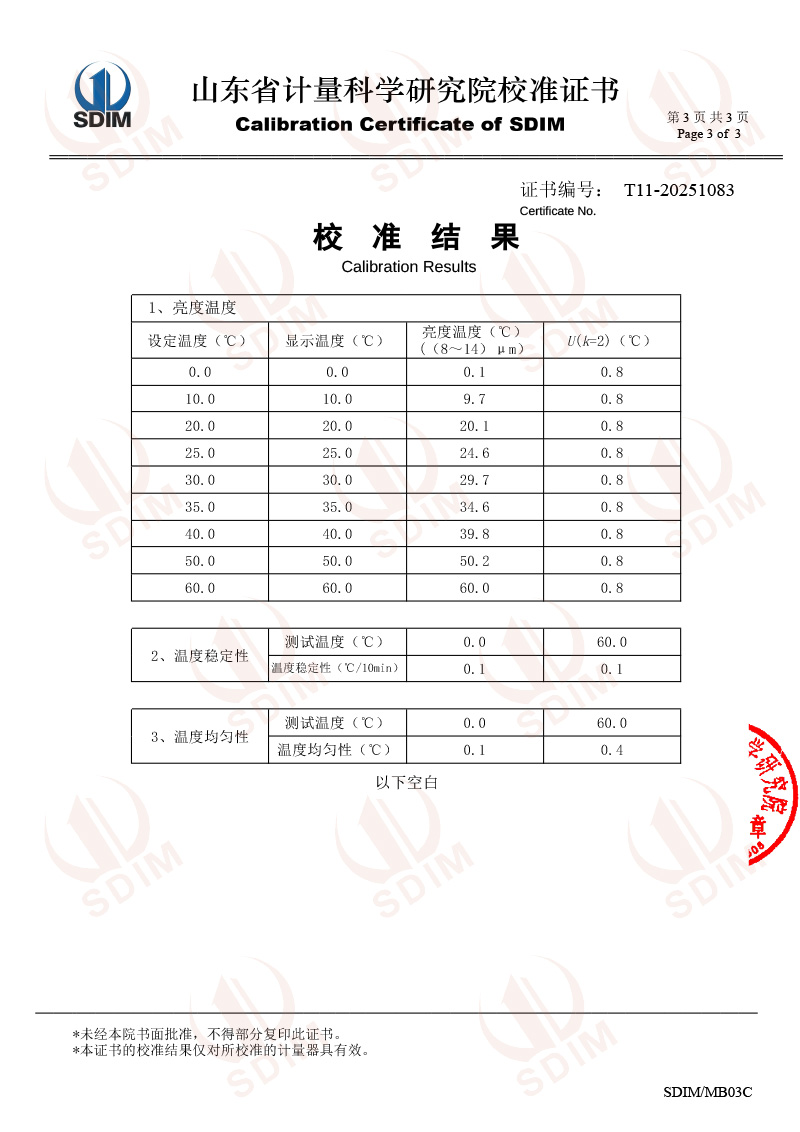 低溫面源黑體爐(0-60℃)校準證書 2025-7-28 本文被閱讀 2741 次