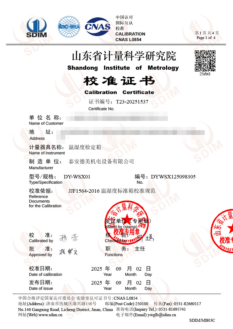 溫濕度檢定箱(-5-65℃)校準證書 2025-9-10 本文被閱讀 2317 次