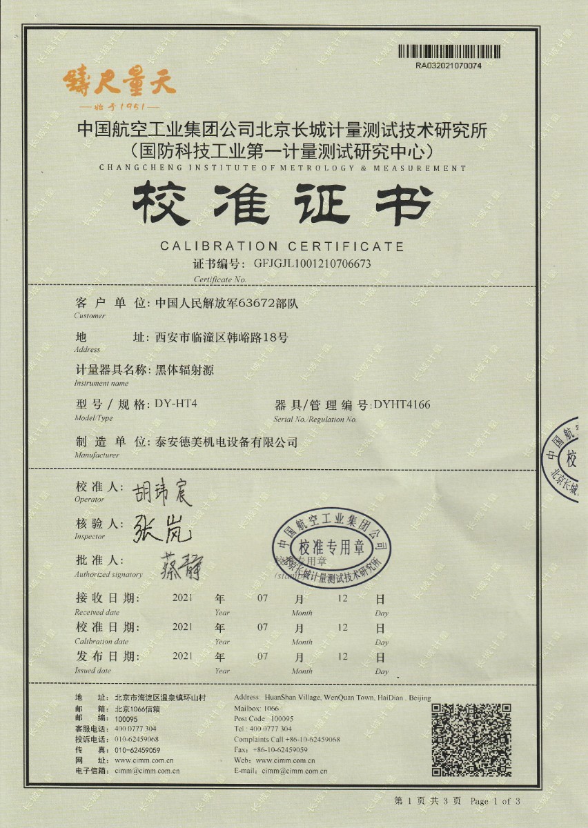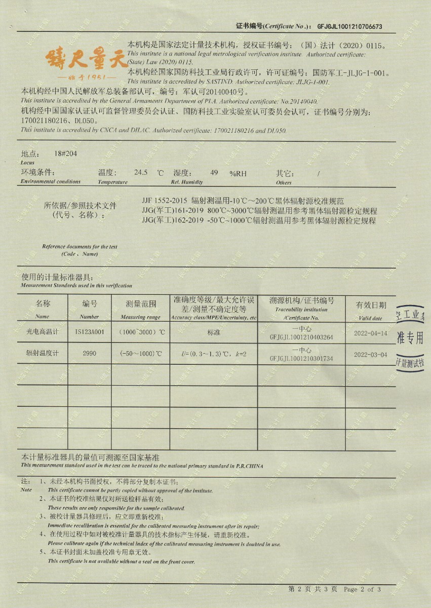 | 上一條:福建邁格林醫(yī)療科技有限公司-黑體輻射源 | 下一條:高精度制冷恒溫槽(-80~100℃)校準(zhǔn)證書 |