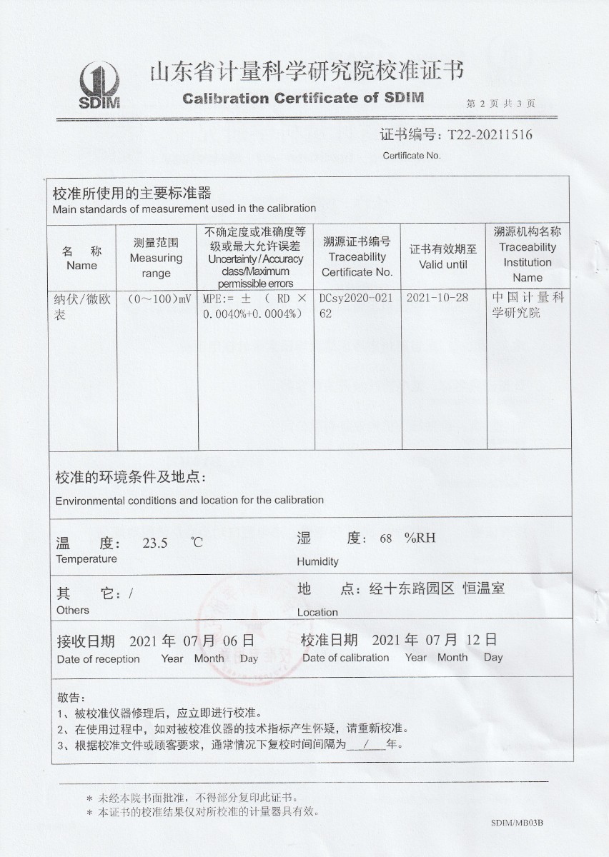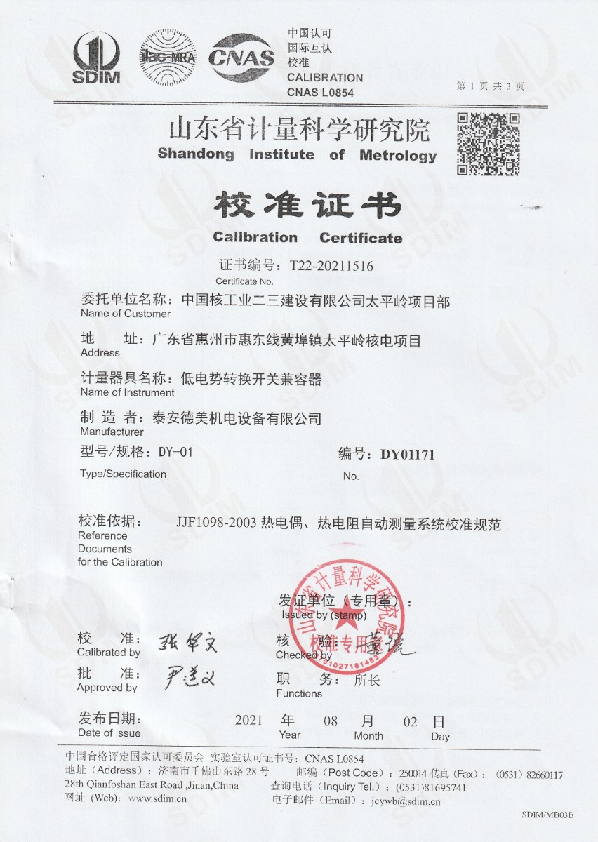 | 上一條:中國核工業(yè)二三建設(shè)有限公司太平嶺項目部水平尺專用校準(zhǔn)臺 | 下一條:高精度制冷恒溫槽(-80~100℃)校準(zhǔn)證書 |