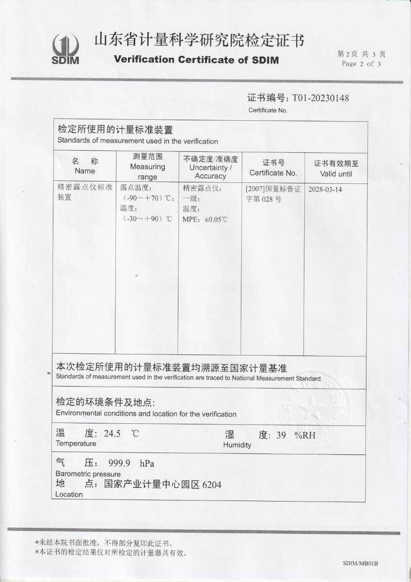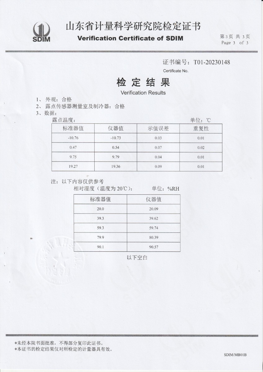 冷鏡式露點儀檢定證書 2023-11-6 本文被閱讀 9208 次