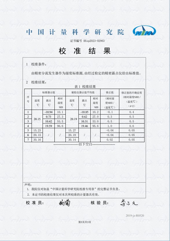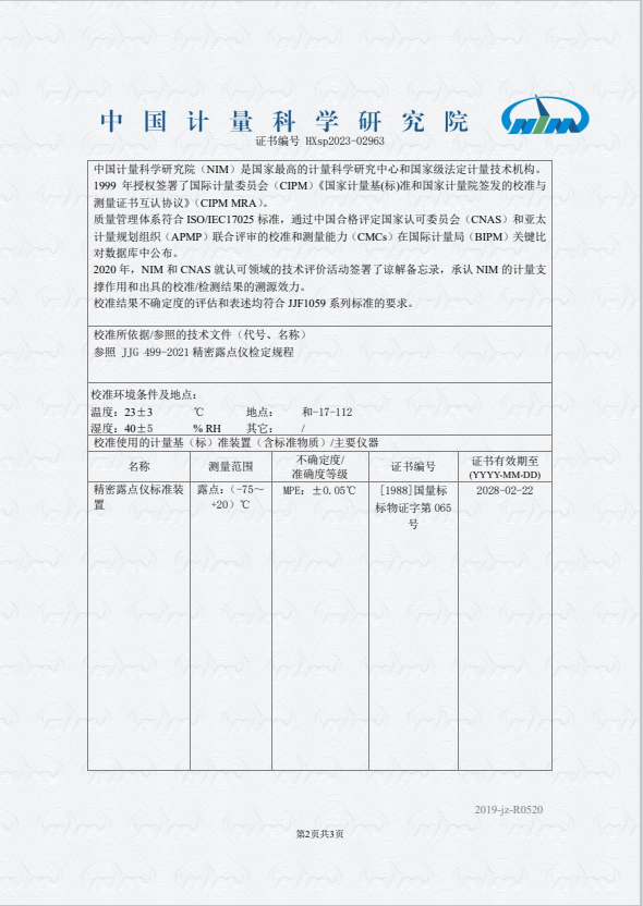 露點儀校準證書 2023-11-9 本文被閱讀 9890 次