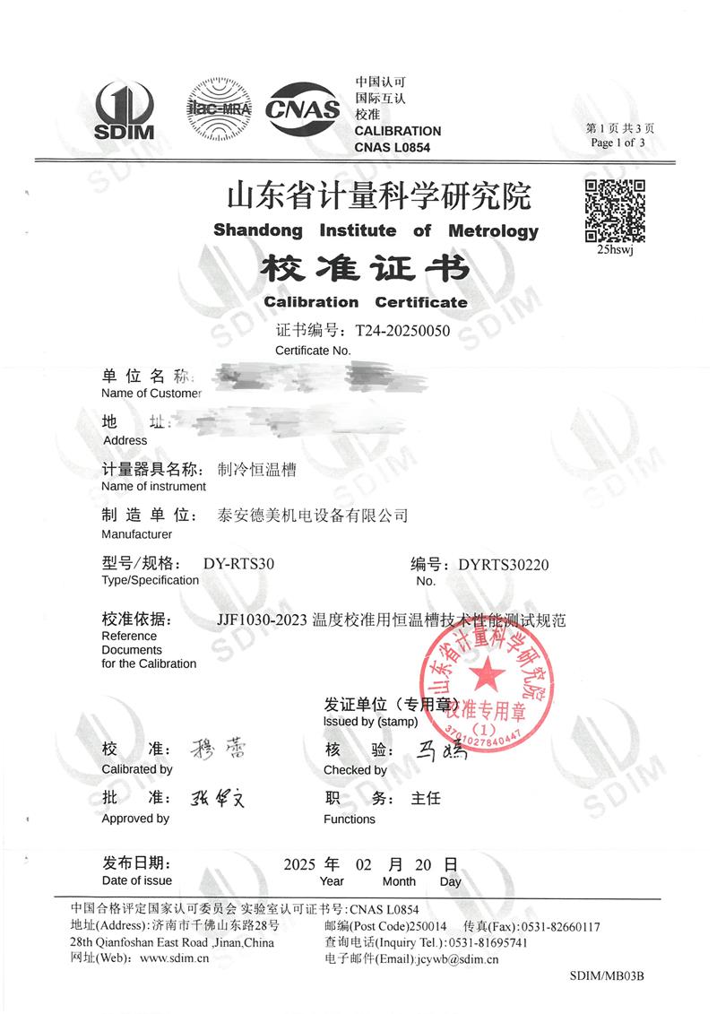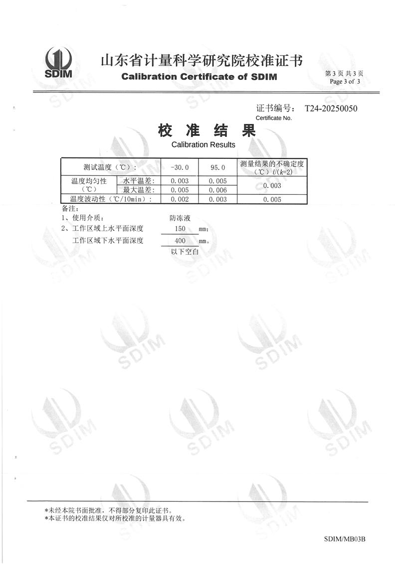 | 上一條:恒溫油槽(70~300℃)校準(zhǔn)證書(shū) | 下一條:高精度制冷恒溫槽(-80~100℃)校準(zhǔn)證書(shū) |