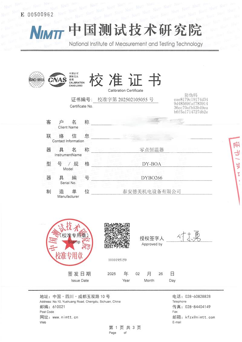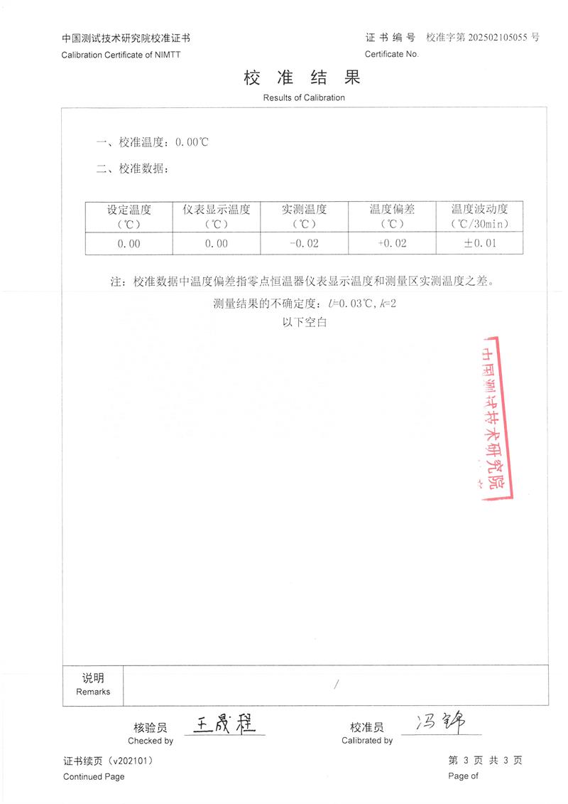 零點(diǎn)恒溫器校準(zhǔn)證書 2025-3-1 本文被閱讀 5682 次