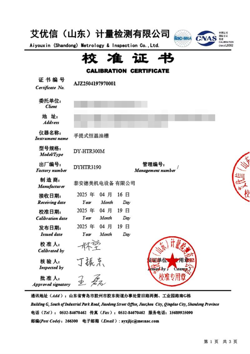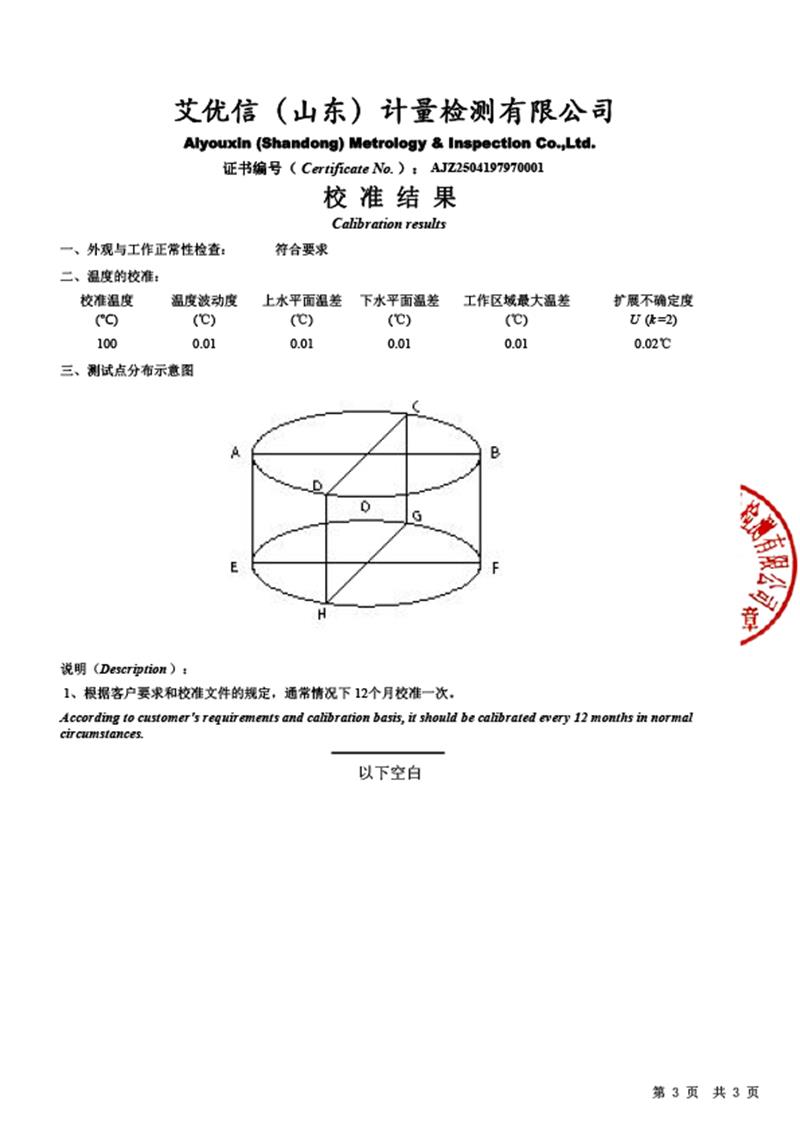 | 上一條:干體溫度校驗(yàn)爐(300-1200℃)校準(zhǔn)證書 | 下一條:高精度制冷恒溫槽(-80~100℃)校準(zhǔn)證書 |