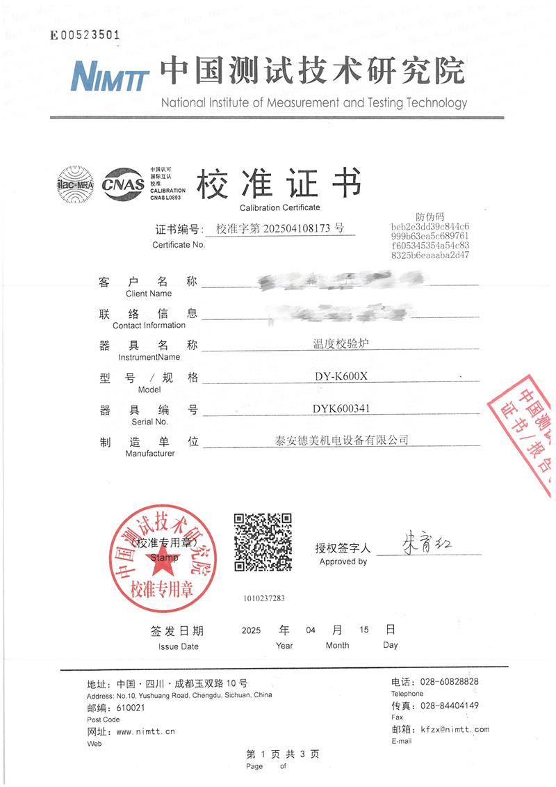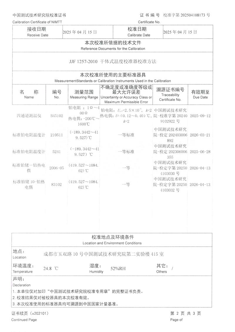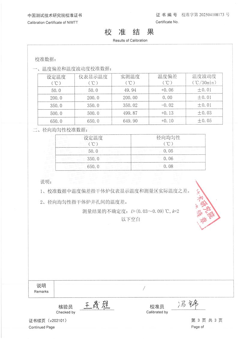 | 上一條:手提式恒溫油槽(70-300℃)校準(zhǔn)證書 | 下一條:高精度制冷恒溫槽(-80~100℃)校準(zhǔn)證書 |