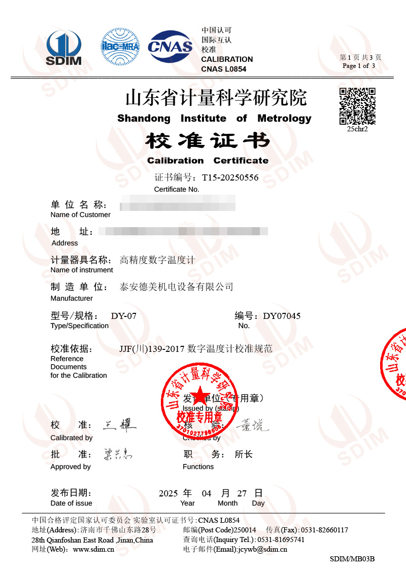 | 上一條:溫度校驗(yàn)爐(50~650℃)校準(zhǔn)證書(shū) | 下一條:高精度制冷恒溫槽(-80~100℃)校準(zhǔn)證書(shū) |
