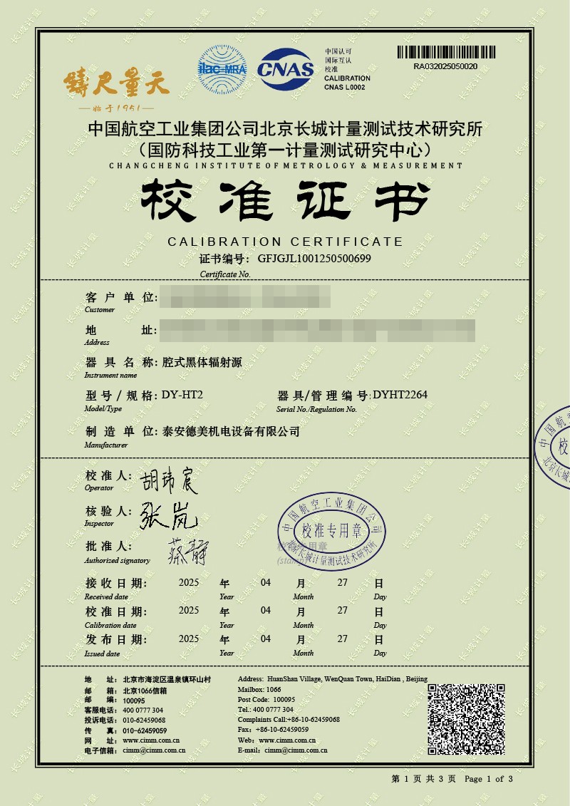 腔式黑體輻射源(50-700℃)校準(zhǔn)證書 2025-5-9 本文被閱讀 3134 次