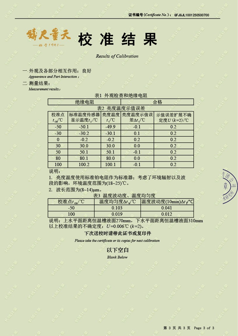 腔式黑體輻射源(-50-100℃)校準(zhǔn)證書 2025-5-9 本文被閱讀 3265 次