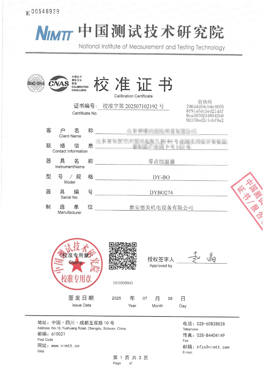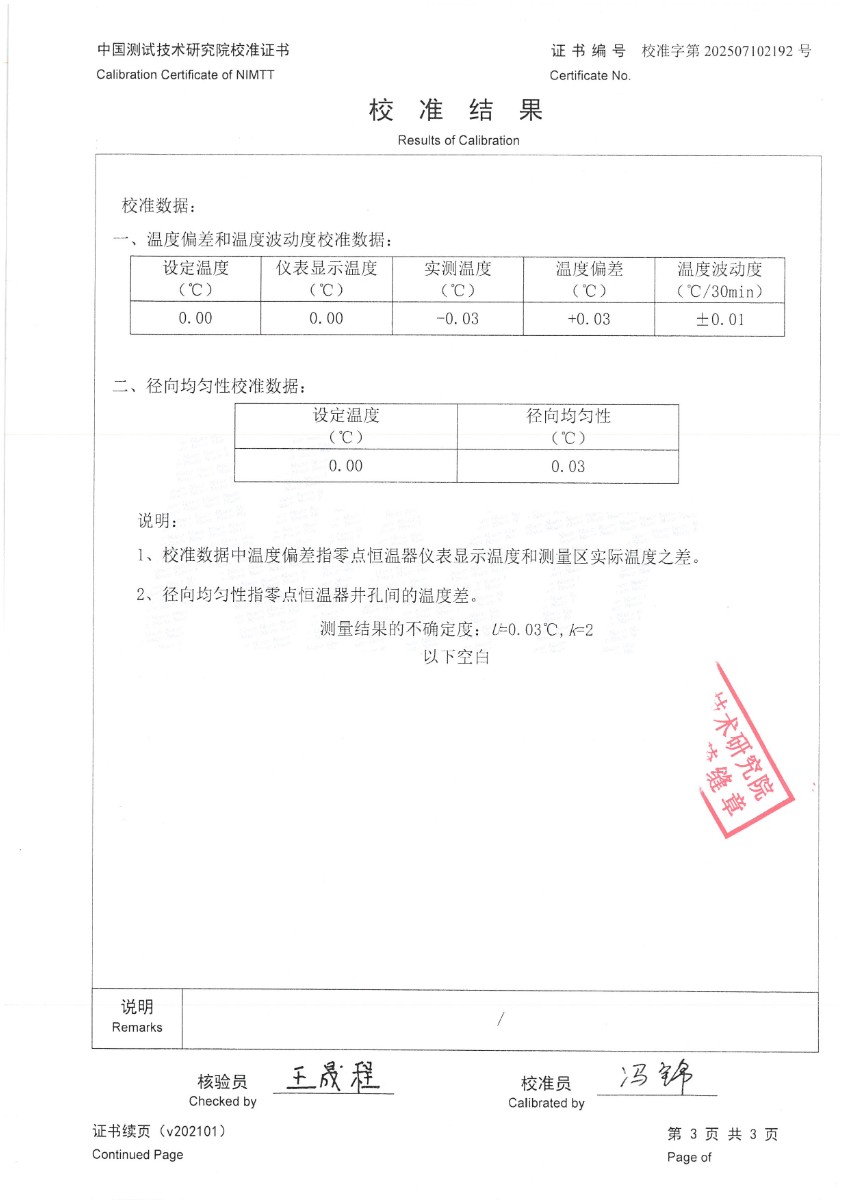 | 上一條:熱電偶補(bǔ)償導(dǎo)線(N分度)校準(zhǔn)證書 | 下一條:高精度制冷恒溫槽(-80~100℃)校準(zhǔn)證書 |