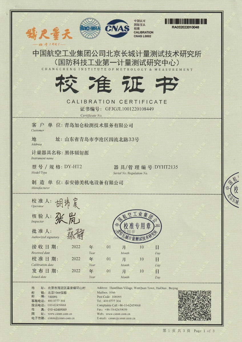 青島加侖檢測技術服務有限公司-黑體輻射源 2022-2-7 本文被閱讀 17559 次