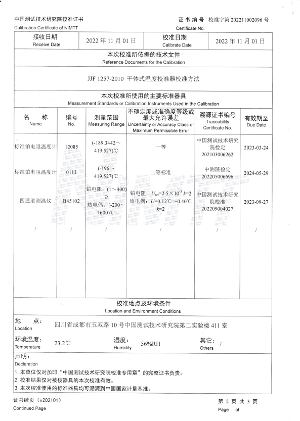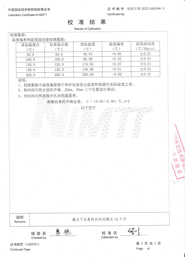 海安橡膠集團股份有限公司 干體爐 校準證書 2022-11-11 本文被閱讀 12155 次
