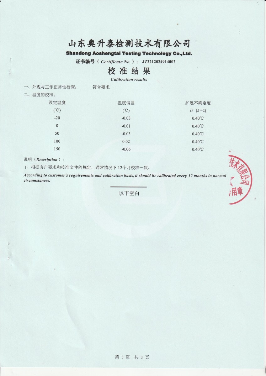 | 上一條:云谷(固安)科技有限公司 溫濕度巡檢儀 | 下一條:溫濕度檢定箱校準(zhǔn)證書(shū) |
