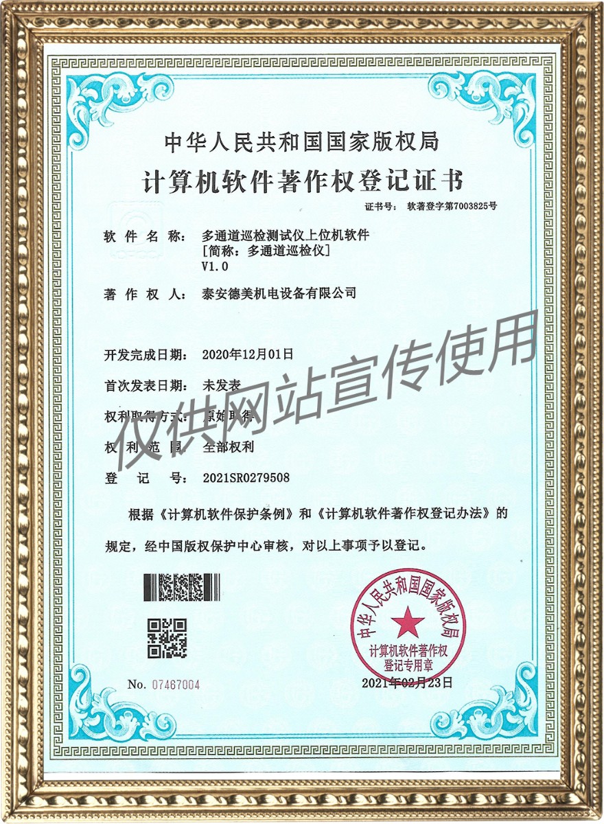 多通道巡檢測試儀上位機軟件V1.0-計算機軟件著作權(quán)登記證書