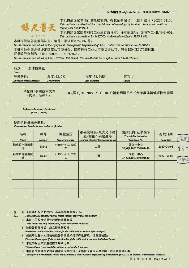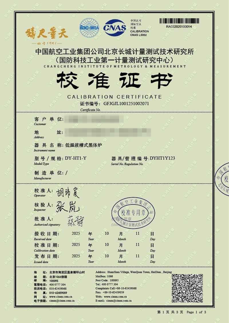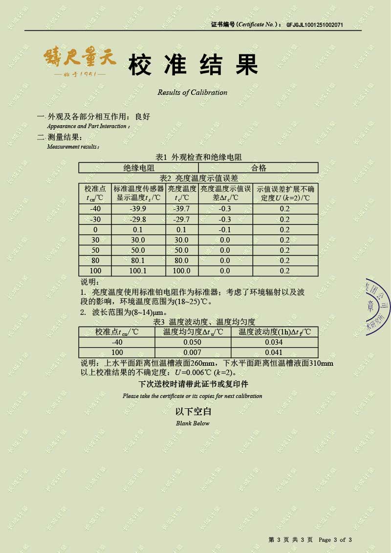 低溫液槽式黑體爐(-40-100℃)校準(zhǔn)證書 2025-10-30 本文被閱讀 981 次