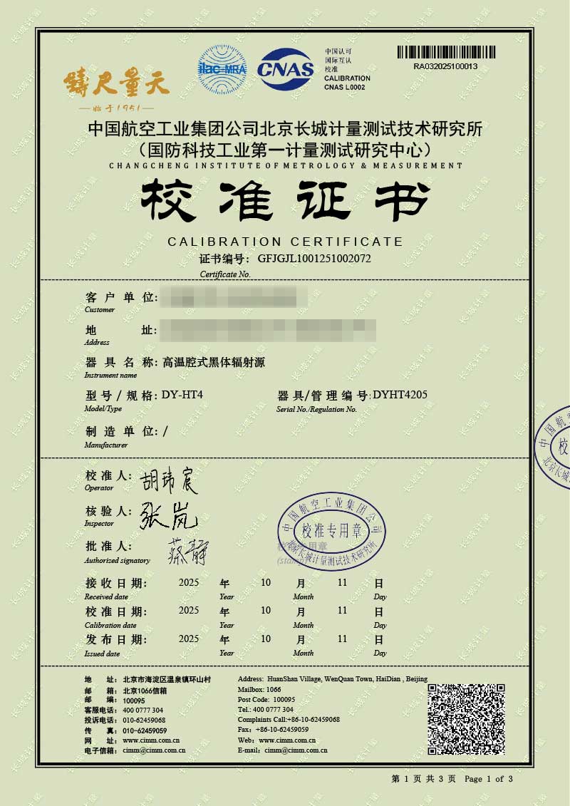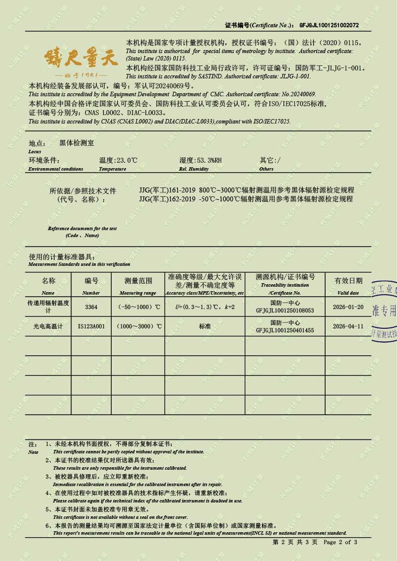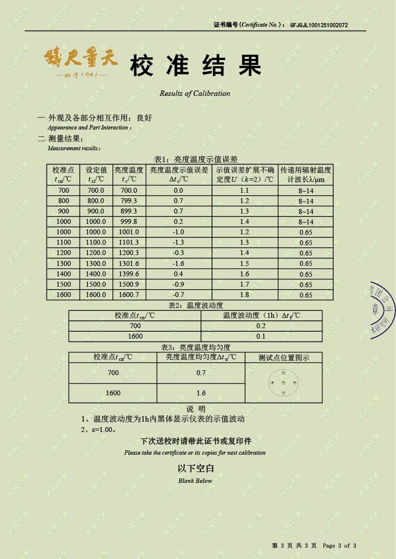 高溫腔式黑體輻射源(700-1600℃)校準證書 2025-10-30 本文被閱讀 944 次