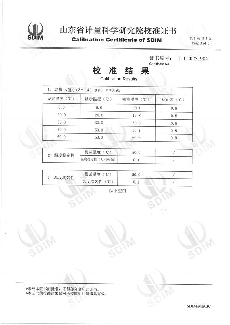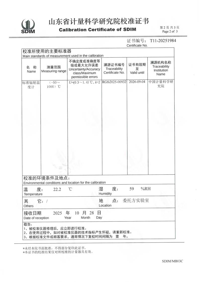 黑體輻射源(0-60°C)校準證書 2025-11-5 本文被閱讀 892 次