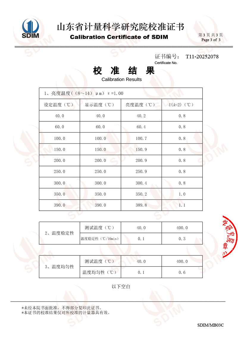 中溫黑體校準(zhǔn)證書 2025-12-4 本文被閱讀 172 次