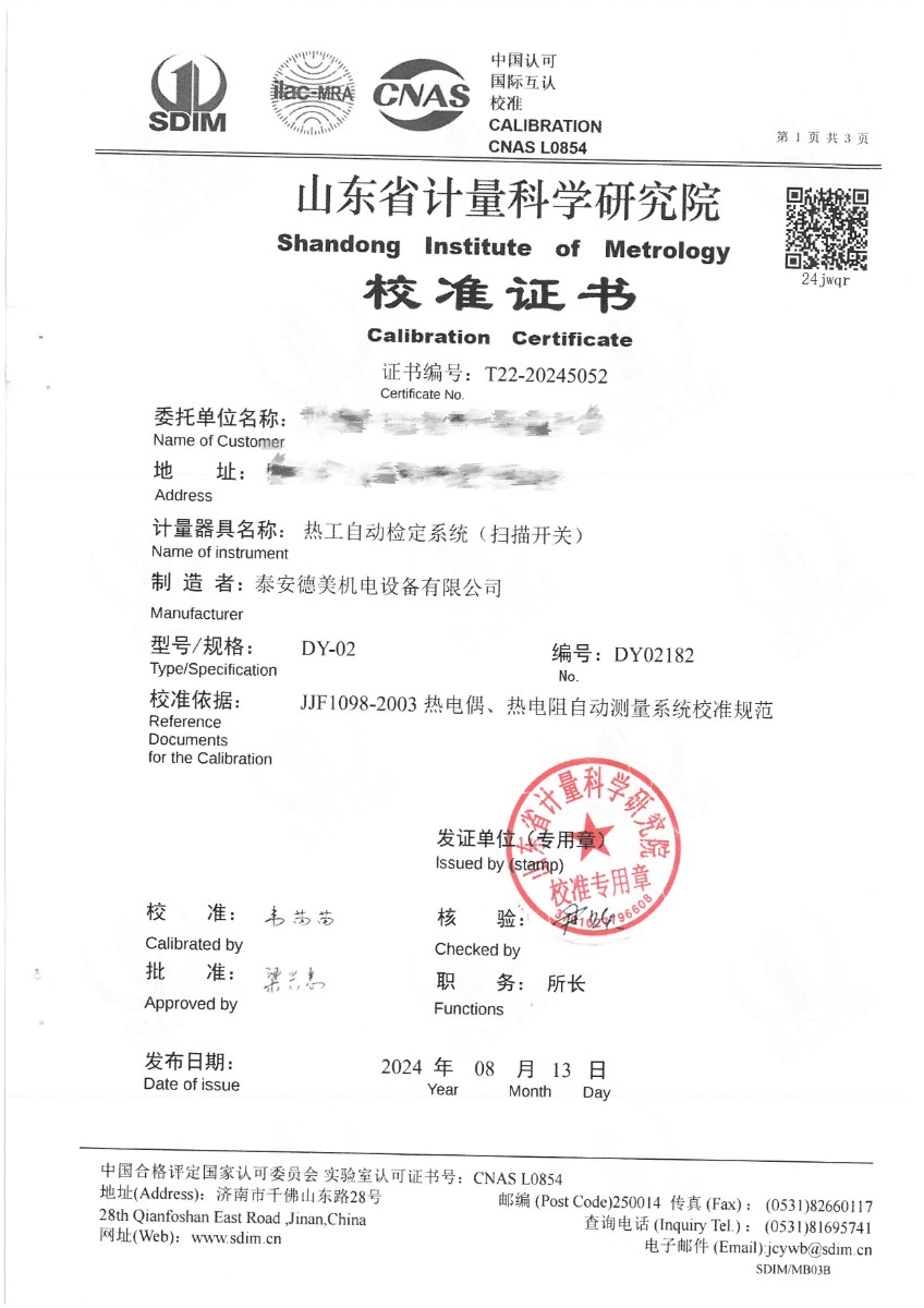 自動檢定系統(tǒng)校準(zhǔn)證書 2024-8-22 本文被閱讀 7012 次