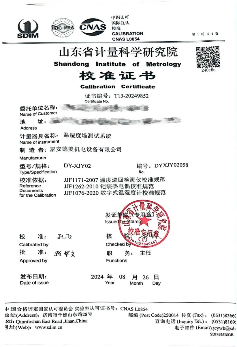 溫濕度場測試系統(tǒng)校準證書 2024-8-29 本文被閱讀 7287 次