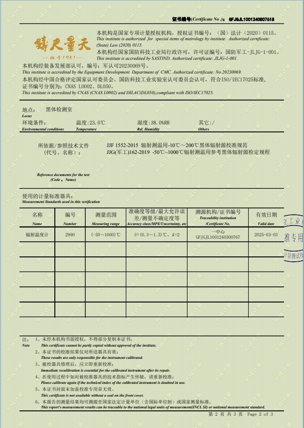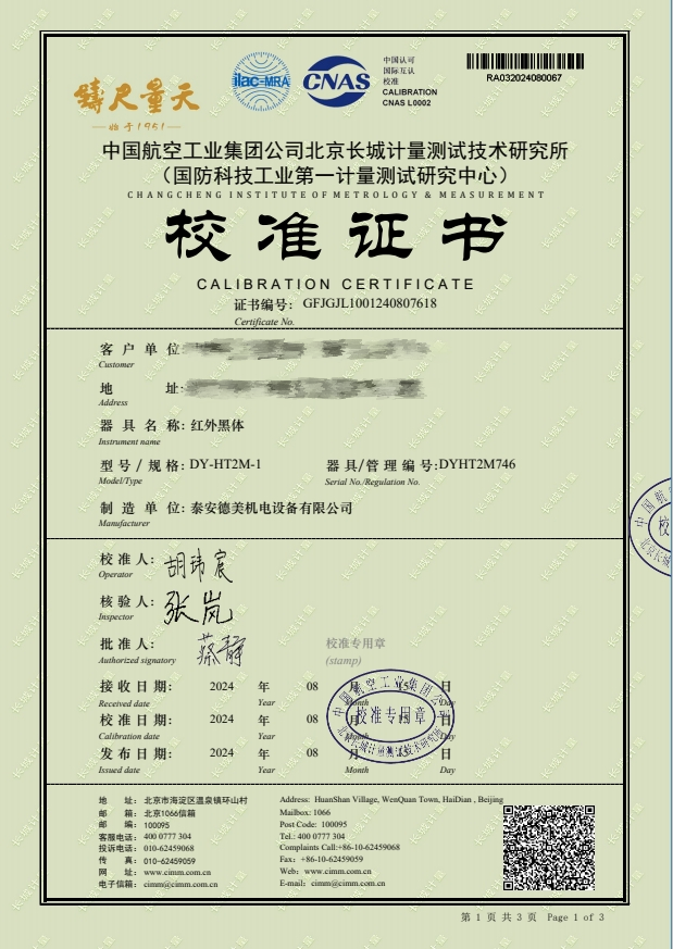 | 上一條:黑體輻射源-(-50~80(100℃))校準(zhǔn)證書 | 下一條:溫濕度檢定箱校準(zhǔn)證書 |