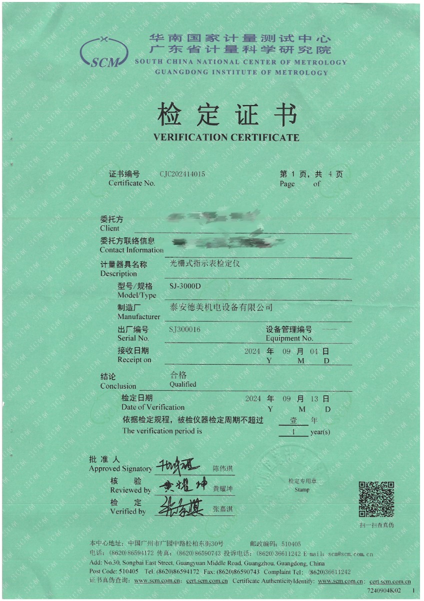 光柵式指示表檢定儀檢定證書 2024-9-20 本文被閱讀 6635 次