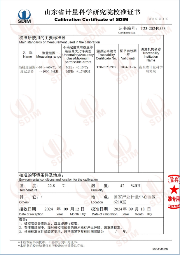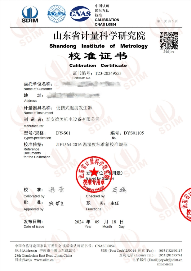 便攜式濕度發(fā)生器(5~50℃)校準證書 2024-9-20 本文被閱讀 6909 次