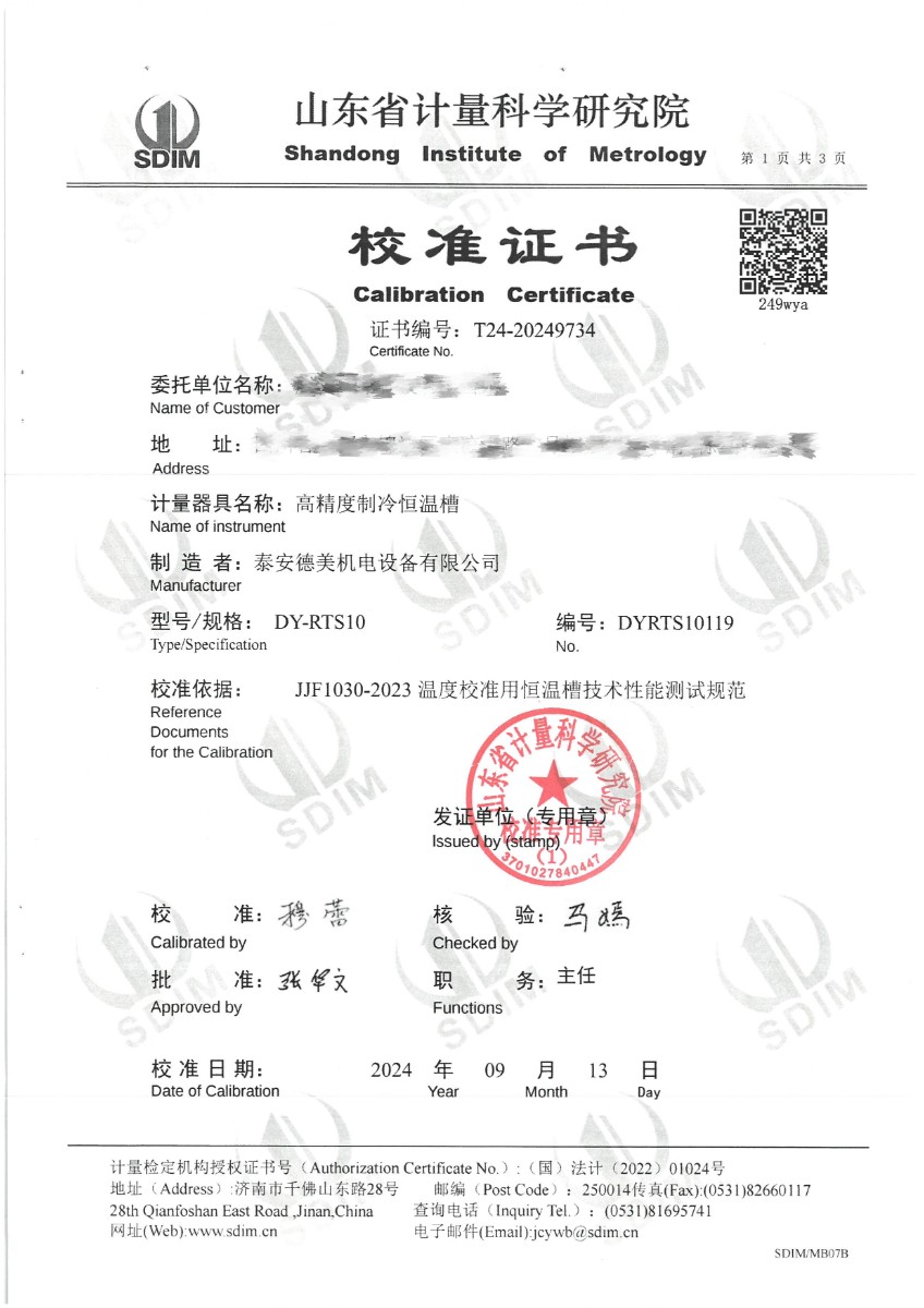 | 上一條:高精度恒溫油槽(70~300)℃校準(zhǔn)證書(shū) | 下一條:露點(diǎn)儀檢定、校準(zhǔn)證書(shū) |