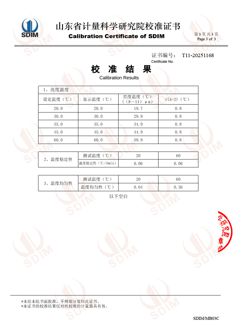 高精度低溫黑體(-10-100℃)校準(zhǔn)證書(shū) 2025-8-6 本文被閱讀 2377 次