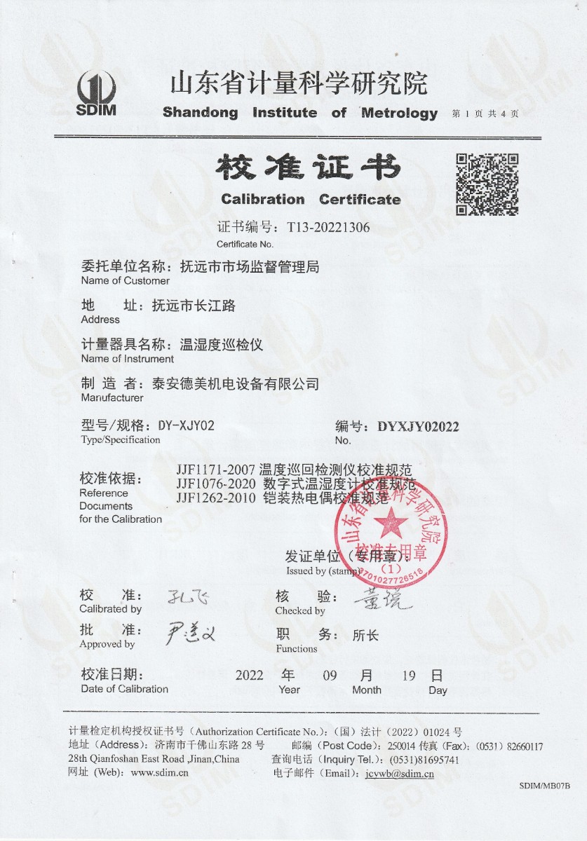 | 上一條:晶科能源(肥東)有限公司-冷鏡式露點(diǎn)儀校準(zhǔn)證書 | 下一條:露點(diǎn)儀檢定、校準(zhǔn)證書 |