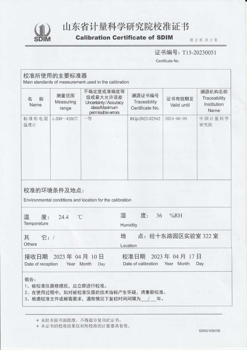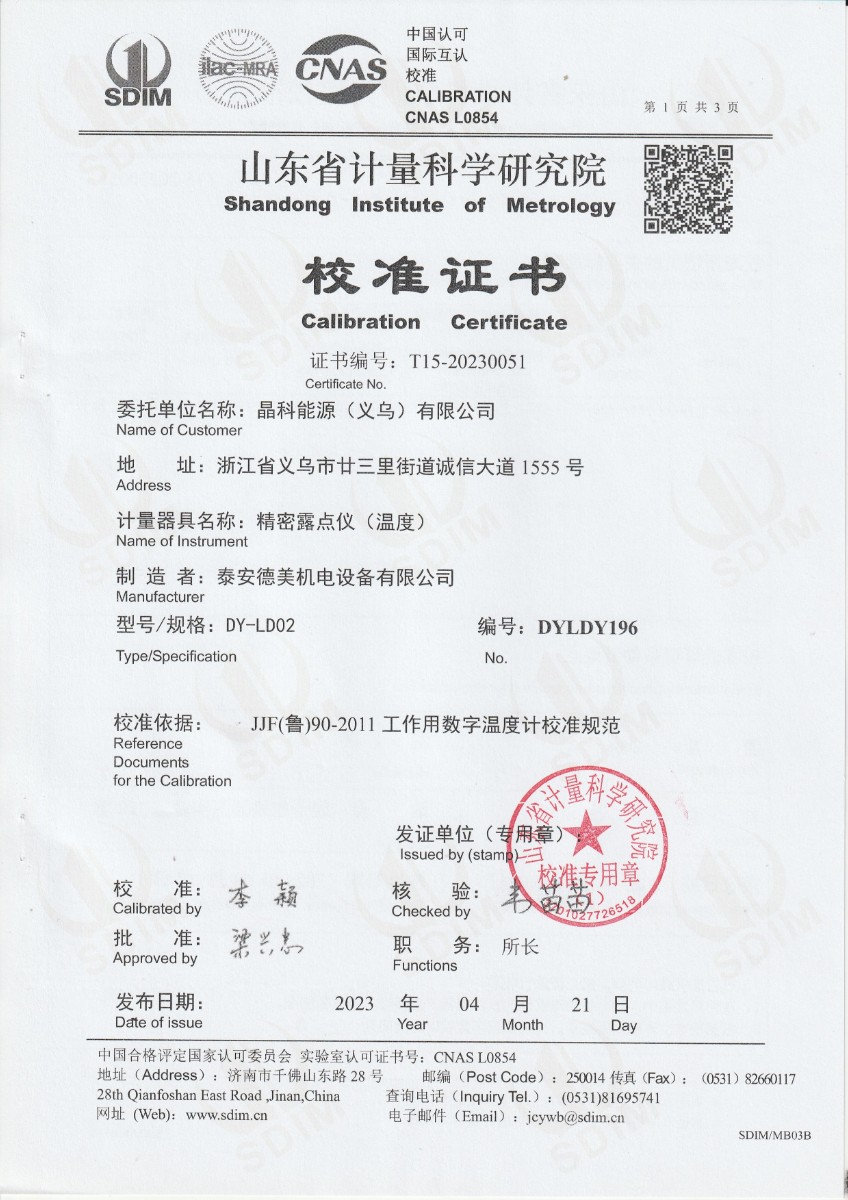 | 上一條:晶科能源(義烏)有限公司 精密露點儀 檢定證書 | 下一條:高精度制冷恒溫槽(-80~100℃)校準(zhǔn)證書 |