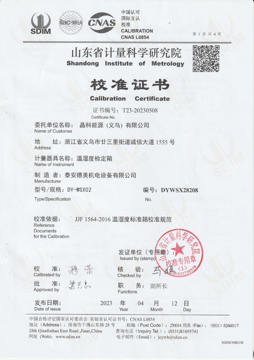 | 上一條:晶科能源(義烏)有限公司 精密露點(diǎn)儀(溫度)校準(zhǔn)證書 | 下一條:高精度制冷恒溫槽(-80~100℃)校準(zhǔn)證書 |