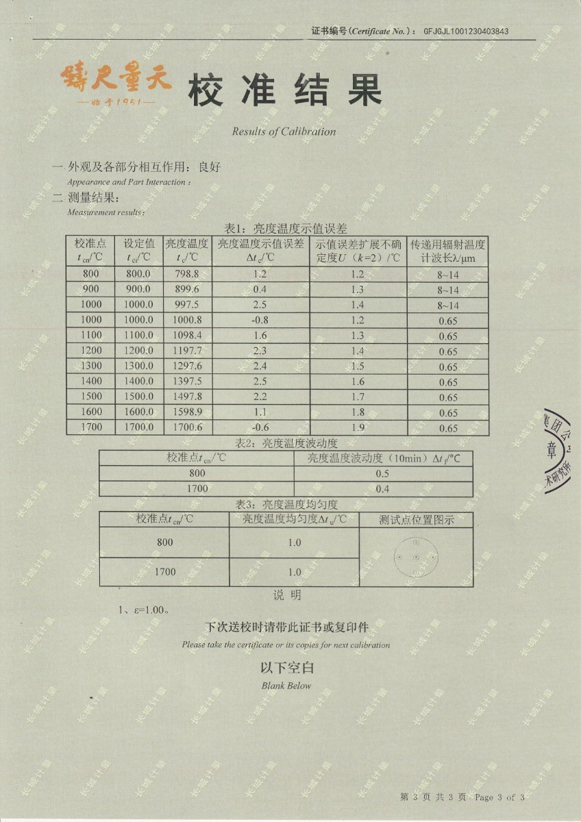 | 上一條:無錫英菲感知技術(shù)有限公司 高溫黑體 校準證書 (2) | 下一條:高精度制冷恒溫槽(-80~100℃)校準證書 |