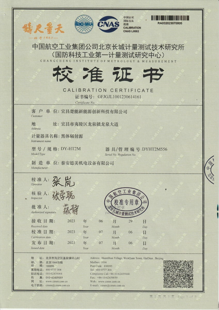 宜昌楚能新能源創(chuàng)新科技有限公司-黑體輻射源 2023-7-17 本文被閱讀 15030 次