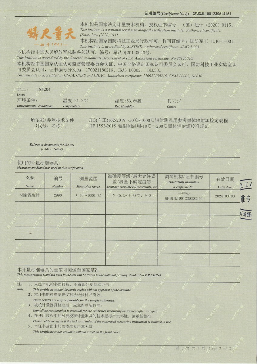 上一條:孝感楚能新能源創(chuàng)新科技有限公司-黑體輻射源下一條:高精度制冷恒溫槽(-80~100℃)校準證書