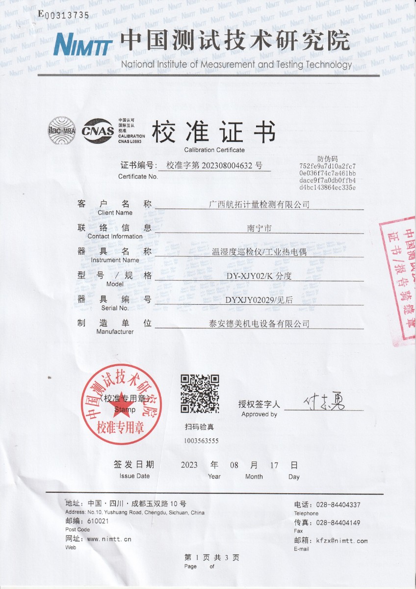 廣西航拓計量檢測有限公司-溫濕度巡檢儀、工業(yè)熱電偶 2023-8-23 本文被閱讀 12300 次