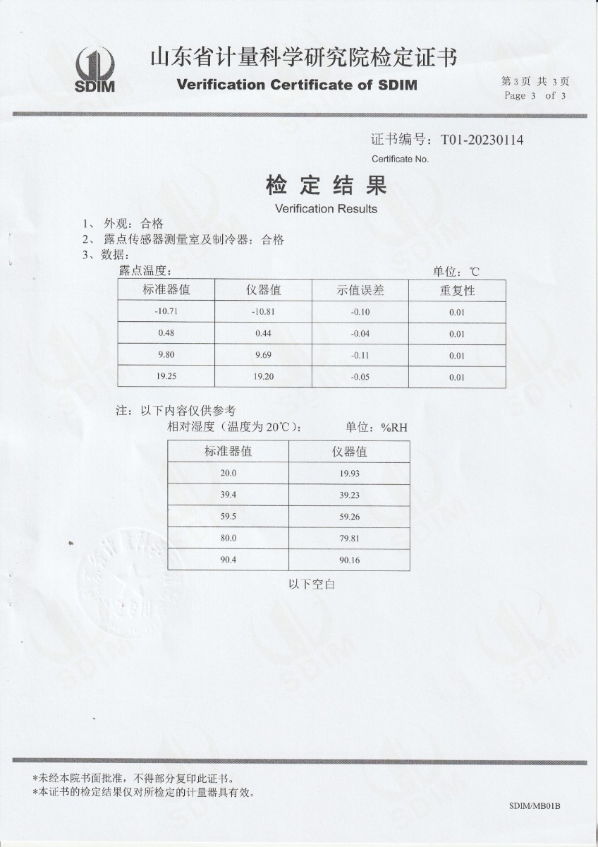 上一條:貴州省恒鑫格計量檢測有限責任公司-冷鏡式露點儀校準證書下一條:露點儀檢定、校準證書