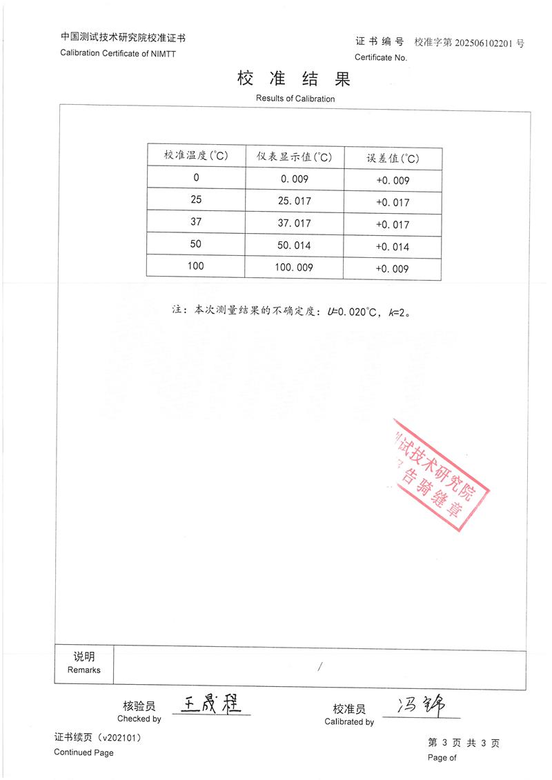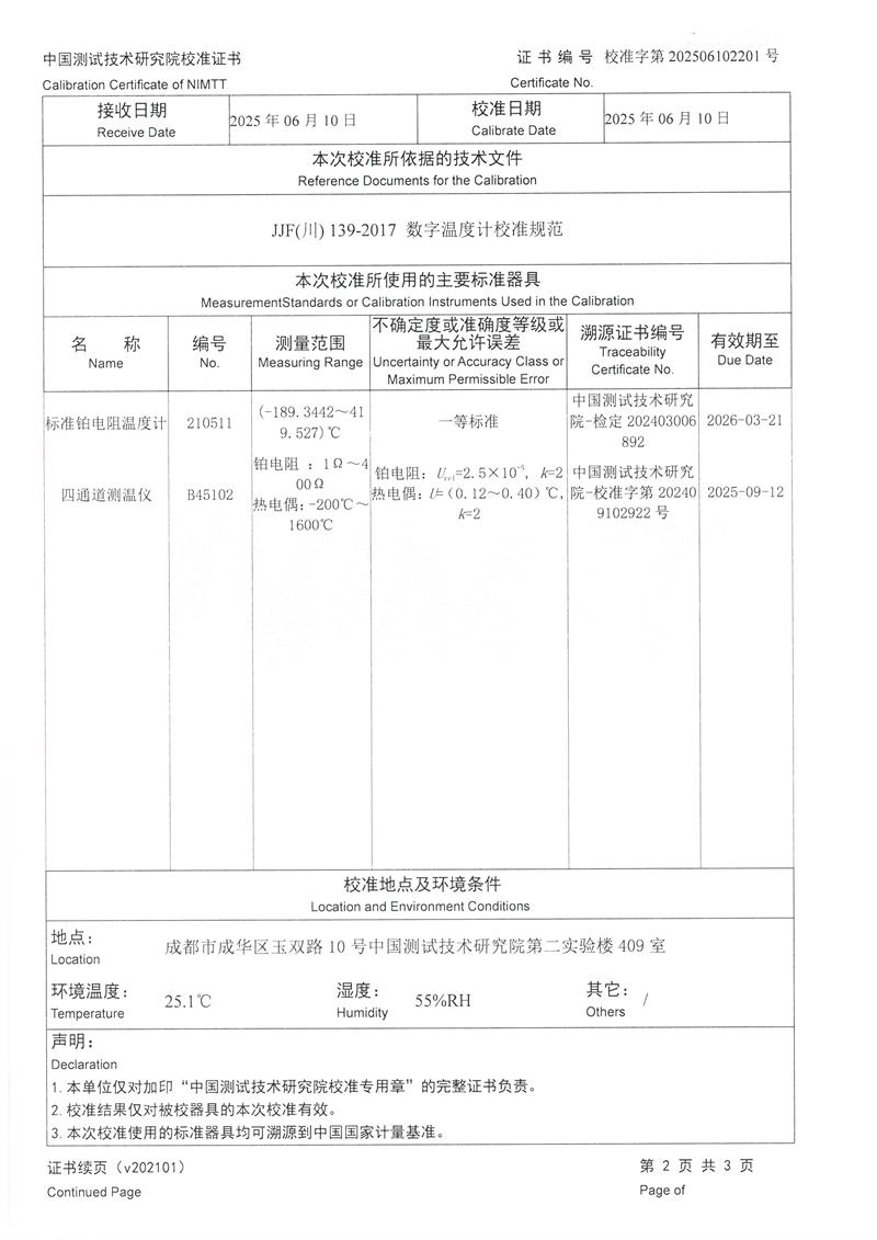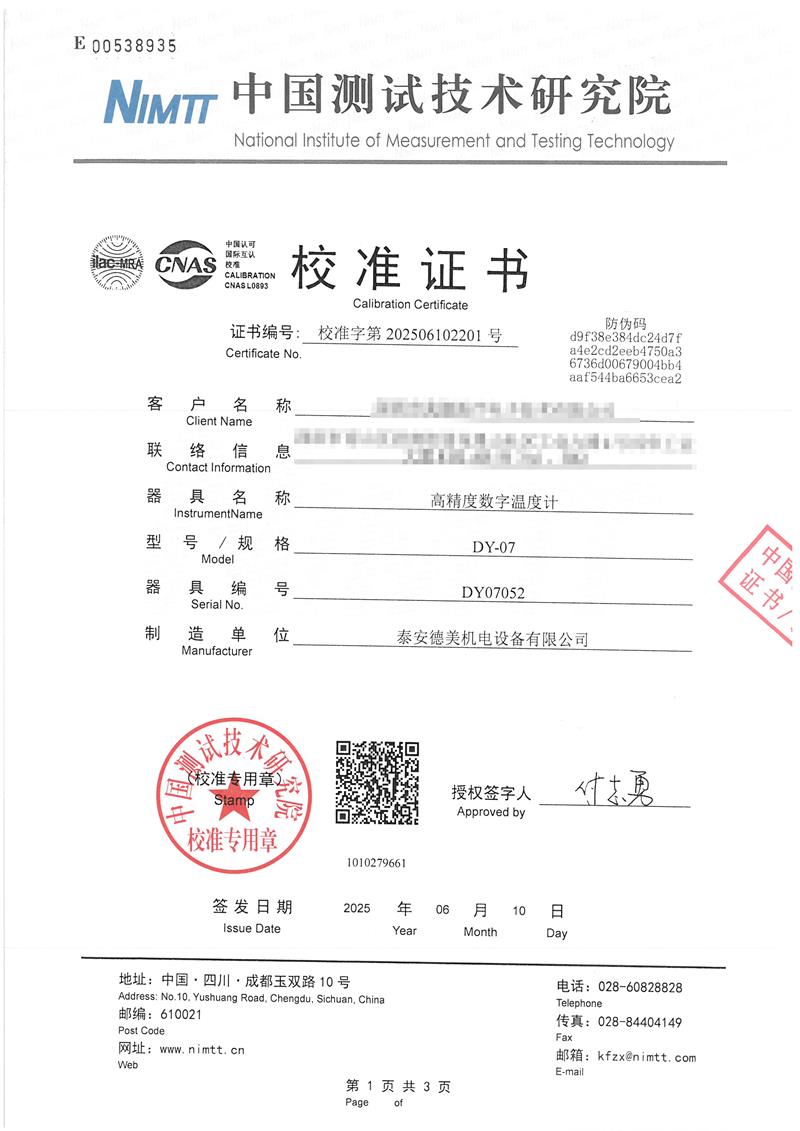 數(shù)字溫度計(-20~150℃)校準證書 2025-6-13 本文被閱讀 3871 次