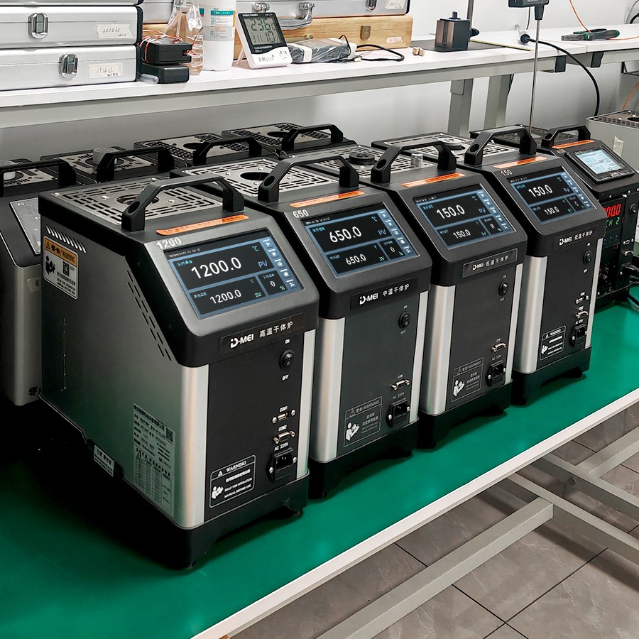 干體爐能夠提供一個(gè)穩(wěn) 定的、均勻的、準(zhǔn)確的溫度環(huán)境(溫場(chǎng)),提供了類似于恒溫槽(液浴槽)的性能,但是干體爐卻攜帶方便,不需要放置液體。干體爐到達(dá)預(yù)定溫度點(diǎn)并且溫度穩(wěn) 定的時(shí)間比恒溫槽快5到10倍,這樣可以大大節(jié)省校準(zhǔn)人員的時(shí)間,提高溫度檢定速度。干體爐的便攜性使其能夠到現(xiàn)場(chǎng)進(jìn)行校準(zhǔn)工作,從而解決了恒溫槽在運(yùn)輸移動(dòng)上的困難。 通過干體爐可以方便地校準(zhǔn)溫度傳感器、水銀溫度計(jì)、膨脹式溫度計(jì)、熱電偶、熱電阻、等溫度傳感器。