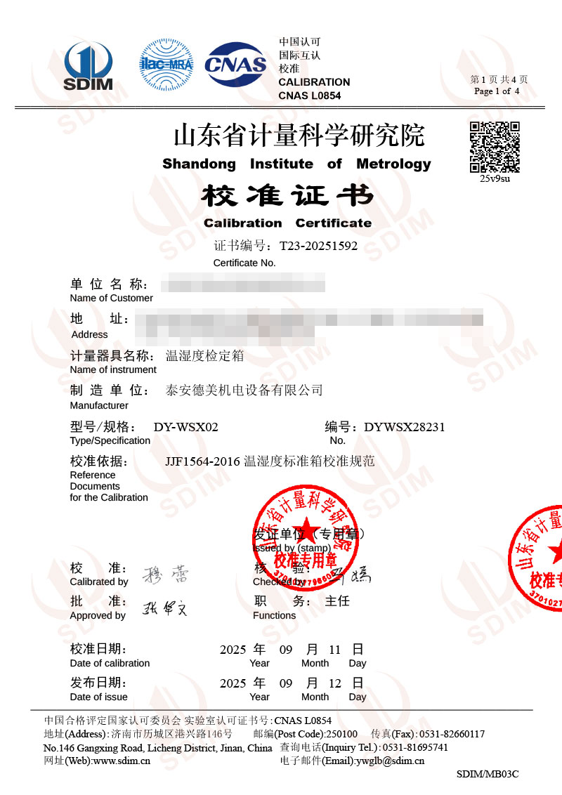 | 上一條:輻射源黑體爐(室溫+5-300℃)校準(zhǔn)證書 | 下一條:高精度制冷恒溫槽(-80~100℃)校準(zhǔn)證書 |
