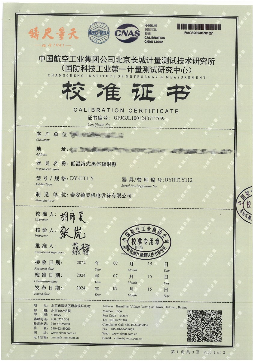| 上一條:標(biāo)準(zhǔn)水銀溫度計(jì)校準(zhǔn)證書 | 下一條:溫濕度檢定箱校準(zhǔn)證書 |