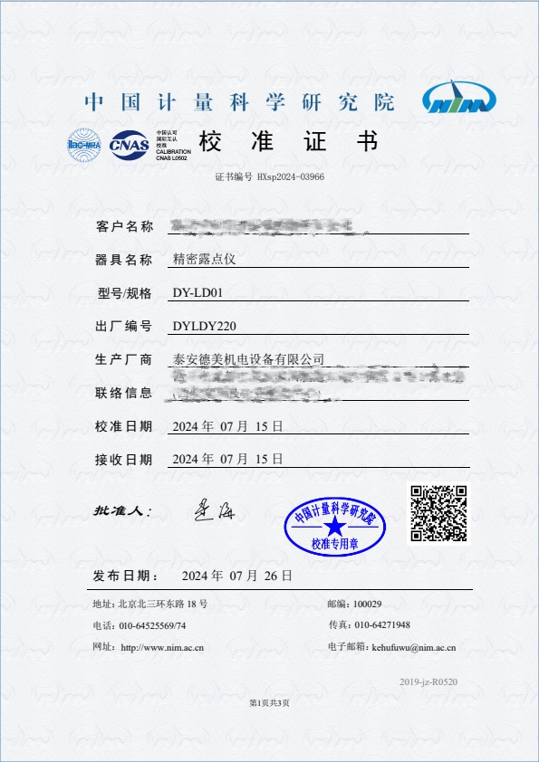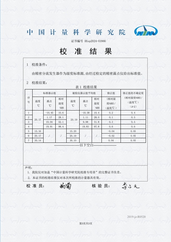露點(diǎn)儀校準(zhǔn)證書 2024-7-29 本文被閱讀 7925 次