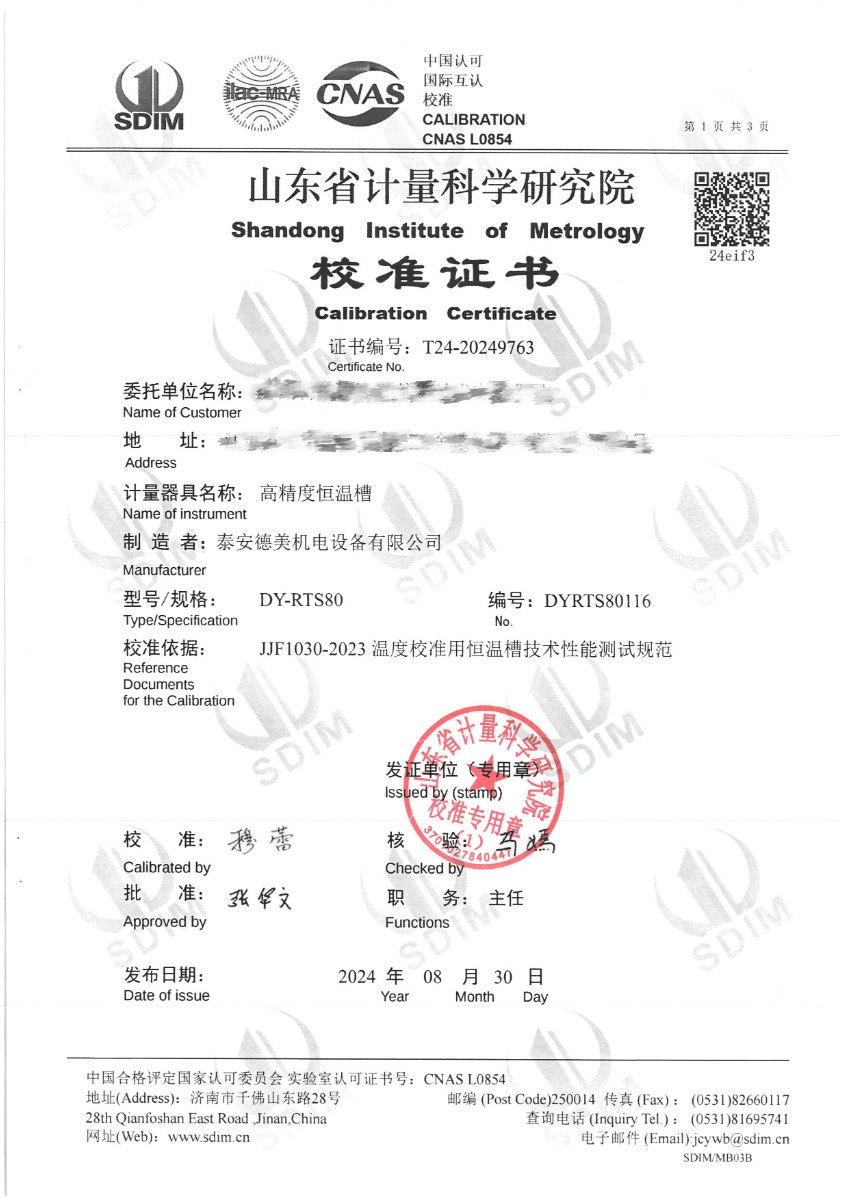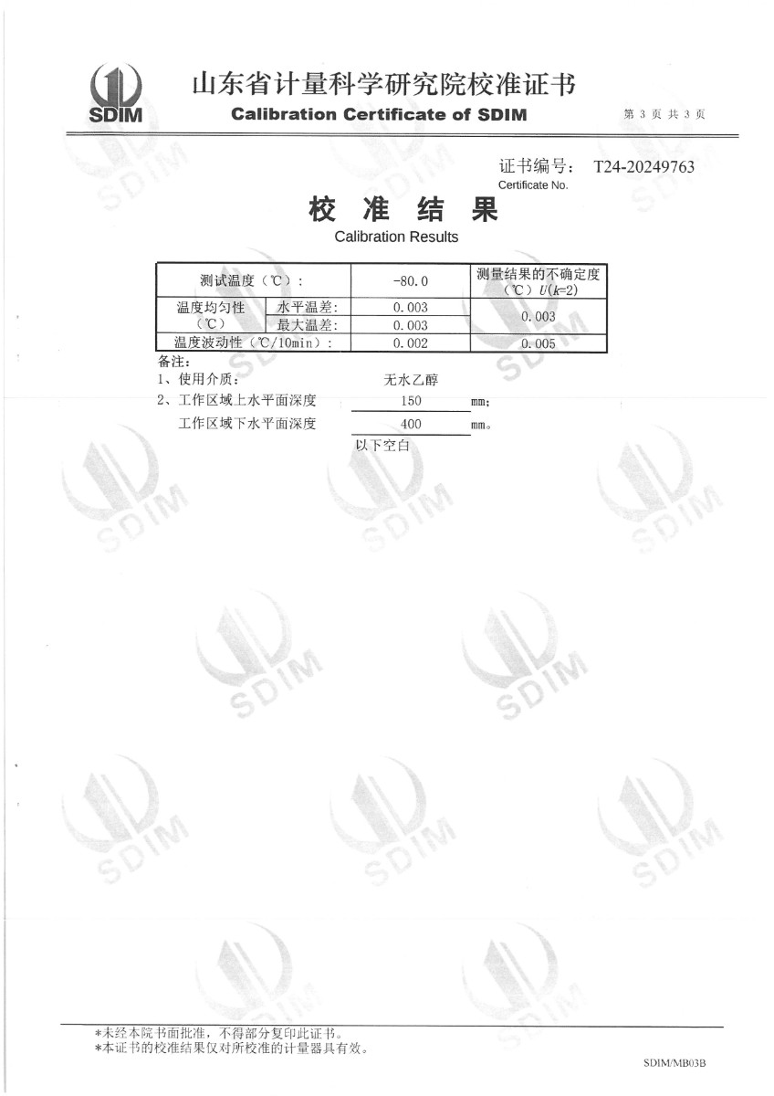 高精度恒溫槽(-80~100℃)校準證書 2024-9-3 本文被閱讀 6309 次