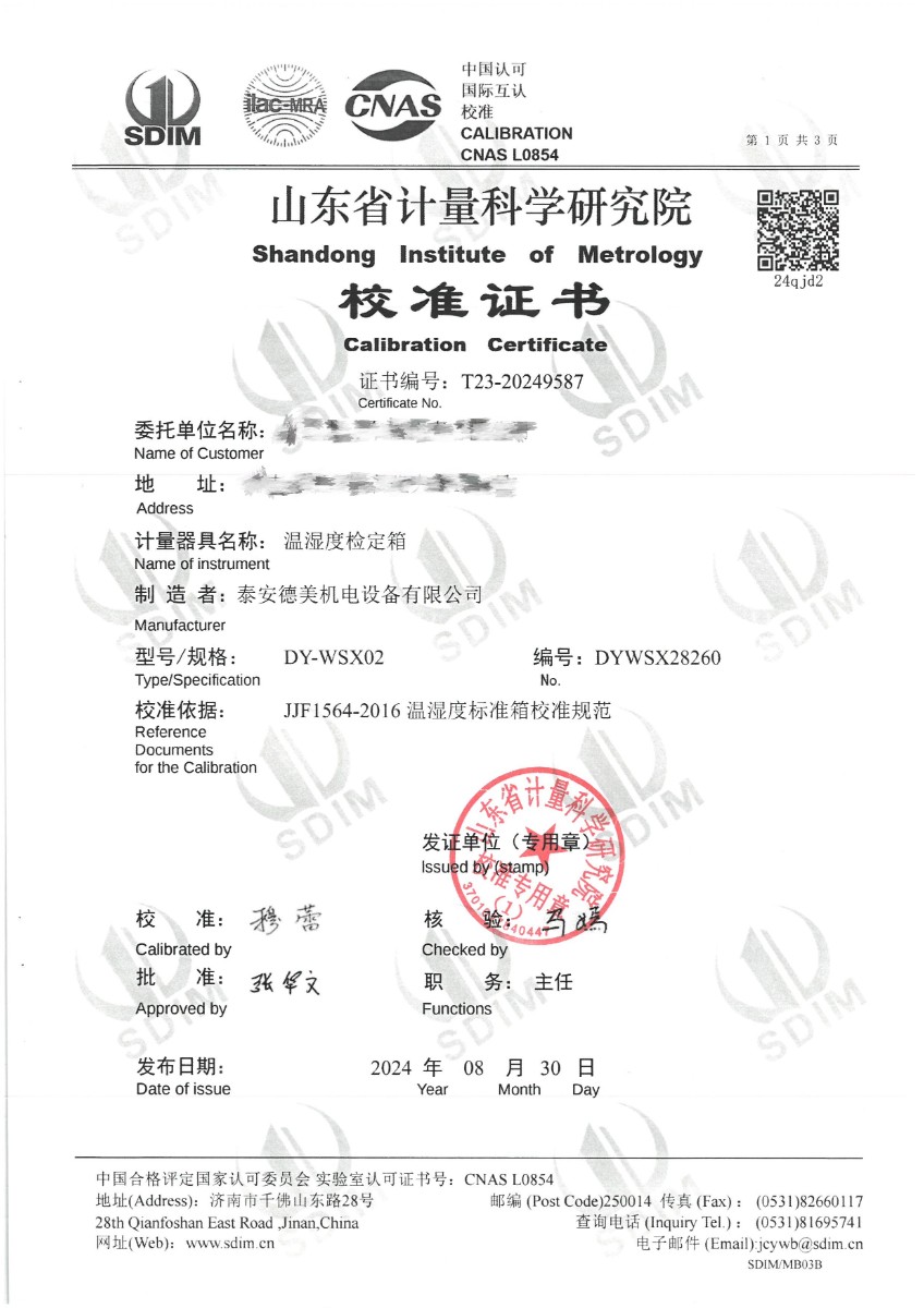 | 上一條:高精度恒溫槽(-80~100℃)校準(zhǔn)證書(shū) | 下一條:露點(diǎn)儀檢定、校準(zhǔn)證書(shū) |