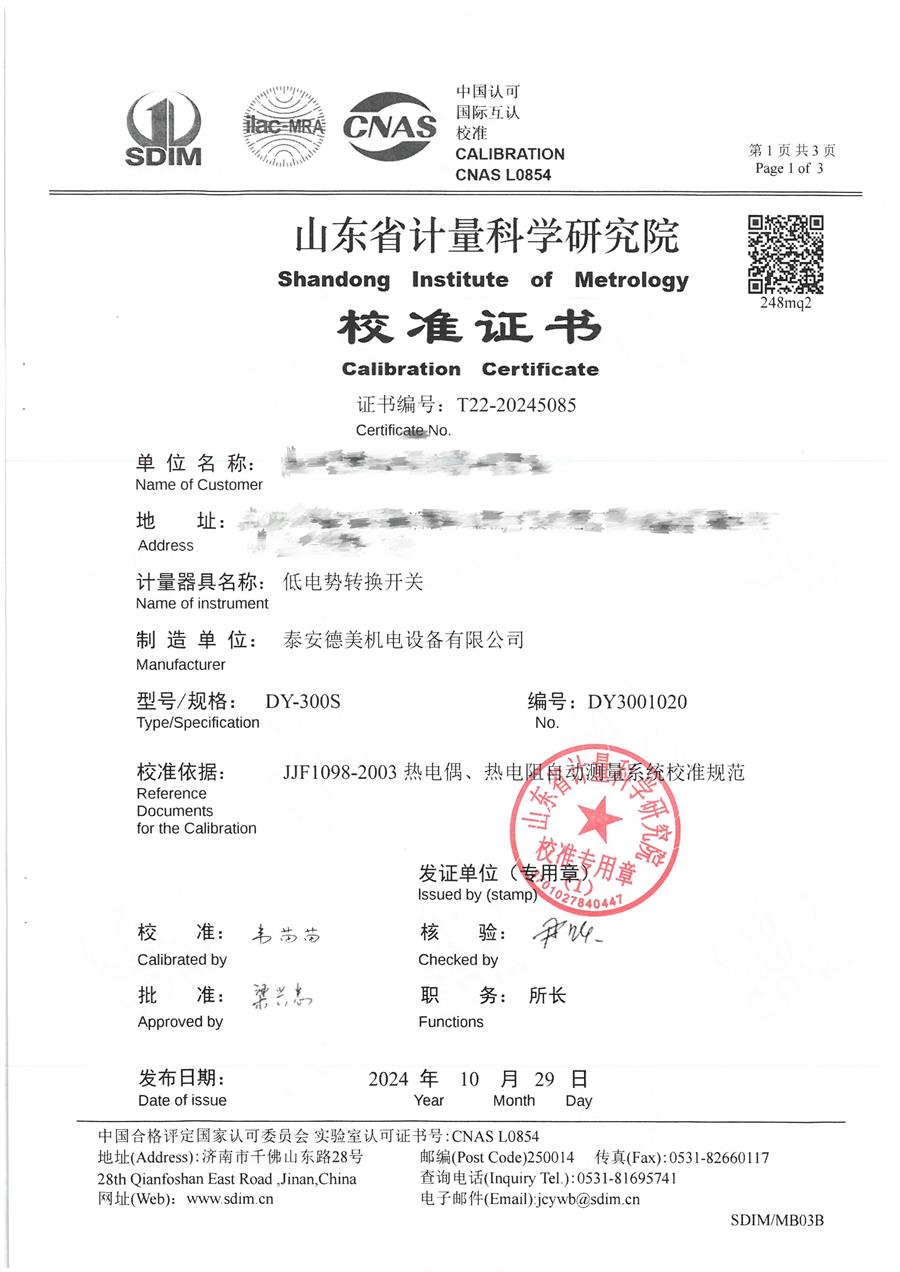 | 上一條:標(biāo)準(zhǔn)濕度發(fā)生器校準(zhǔn)證書 | 下一條:溫濕度檢定箱校準(zhǔn)證書 |