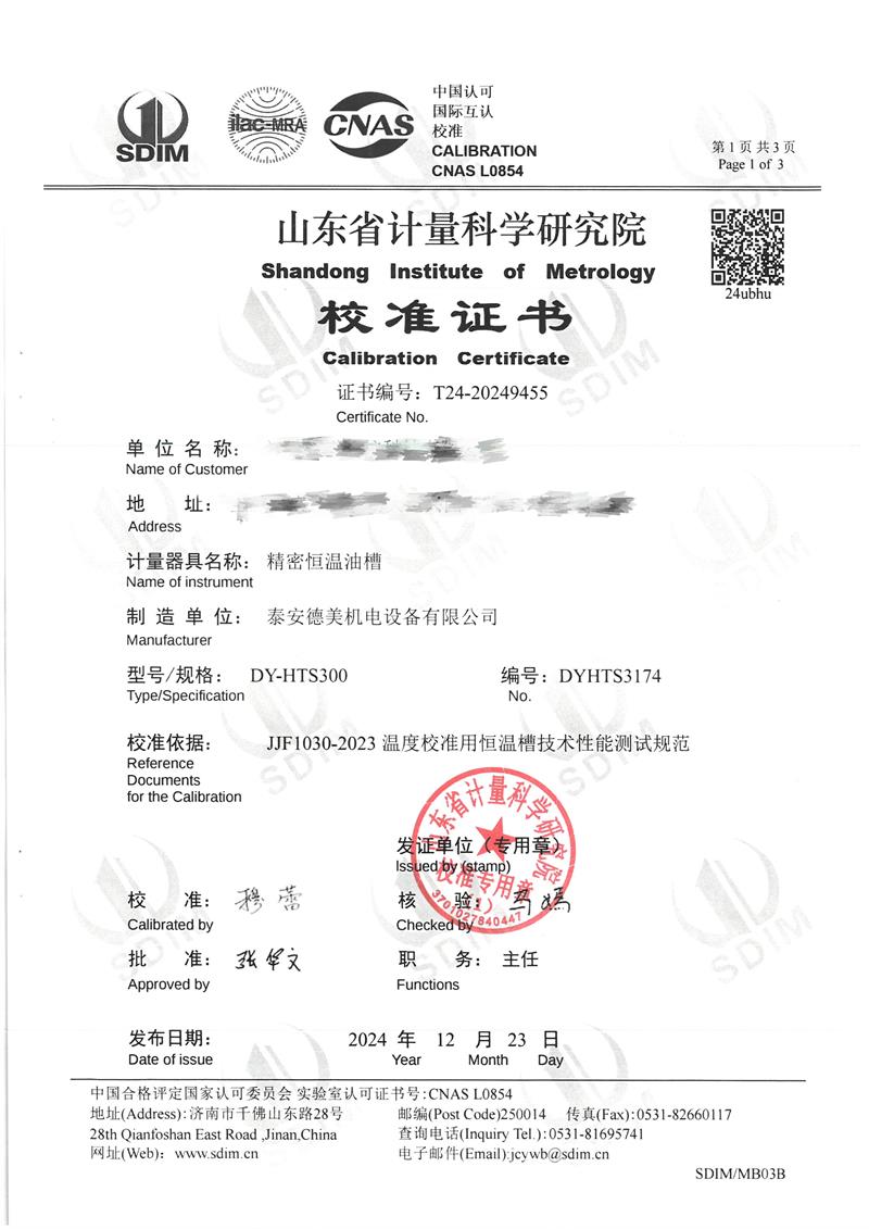 | 上一條:制冷恒溫槽(0~100℃)校準(zhǔn)證書 | 下一條:高精度制冷恒溫槽(-80~100℃)校準(zhǔn)證書 |