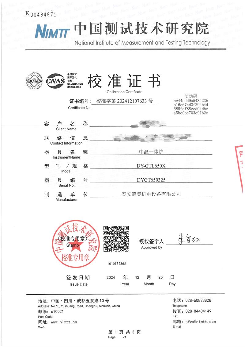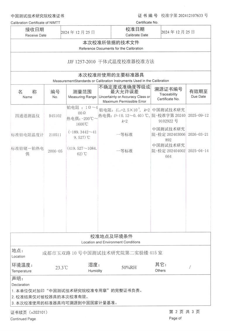中溫干體爐(50~650℃)校準(zhǔn)證書 2025-1-2 本文被閱讀 7138 次