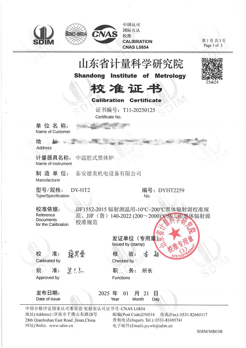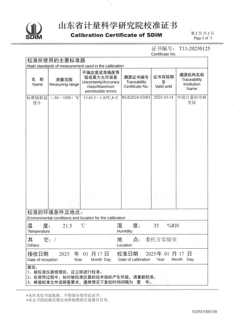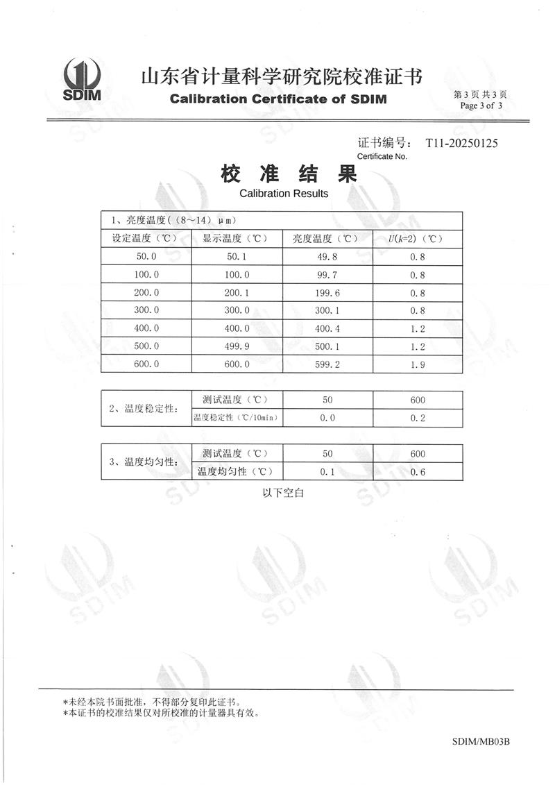中溫腔式黑體爐(50~600℃)校準證書 2025-1-25 本文被閱讀 5493 次