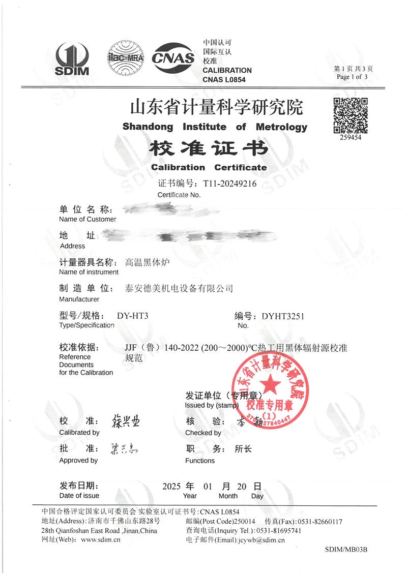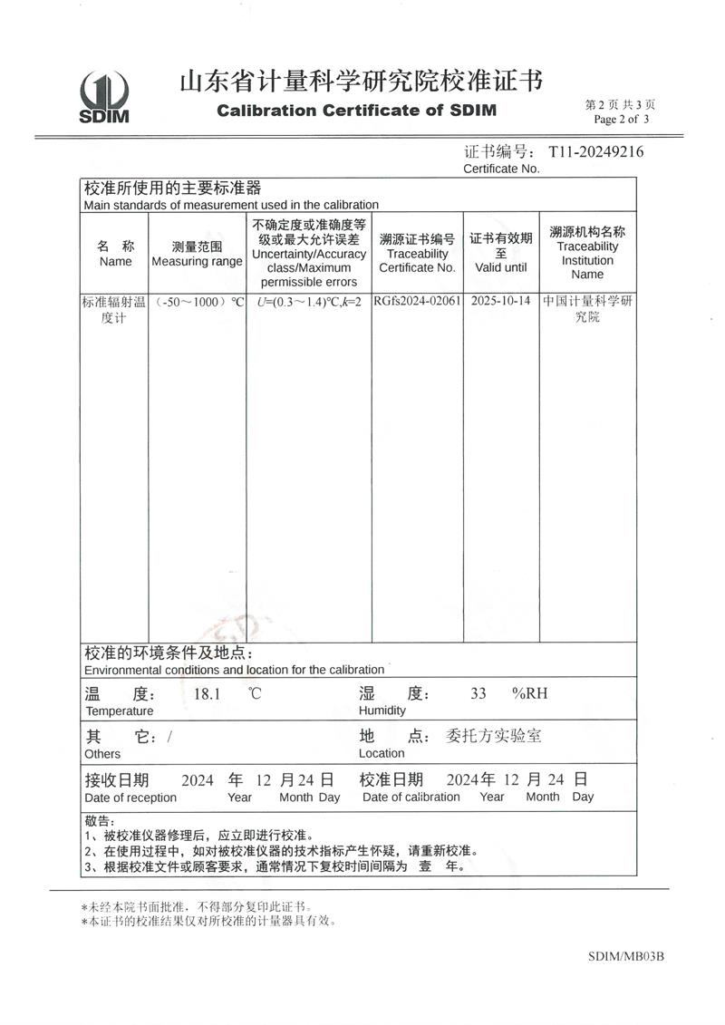 高溫黑體爐(300℃~1200℃)校準證書 2025-1-25 本文被閱讀 7119 次