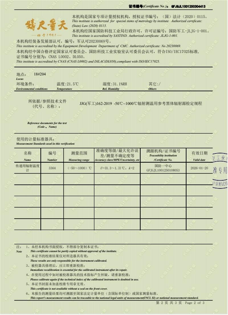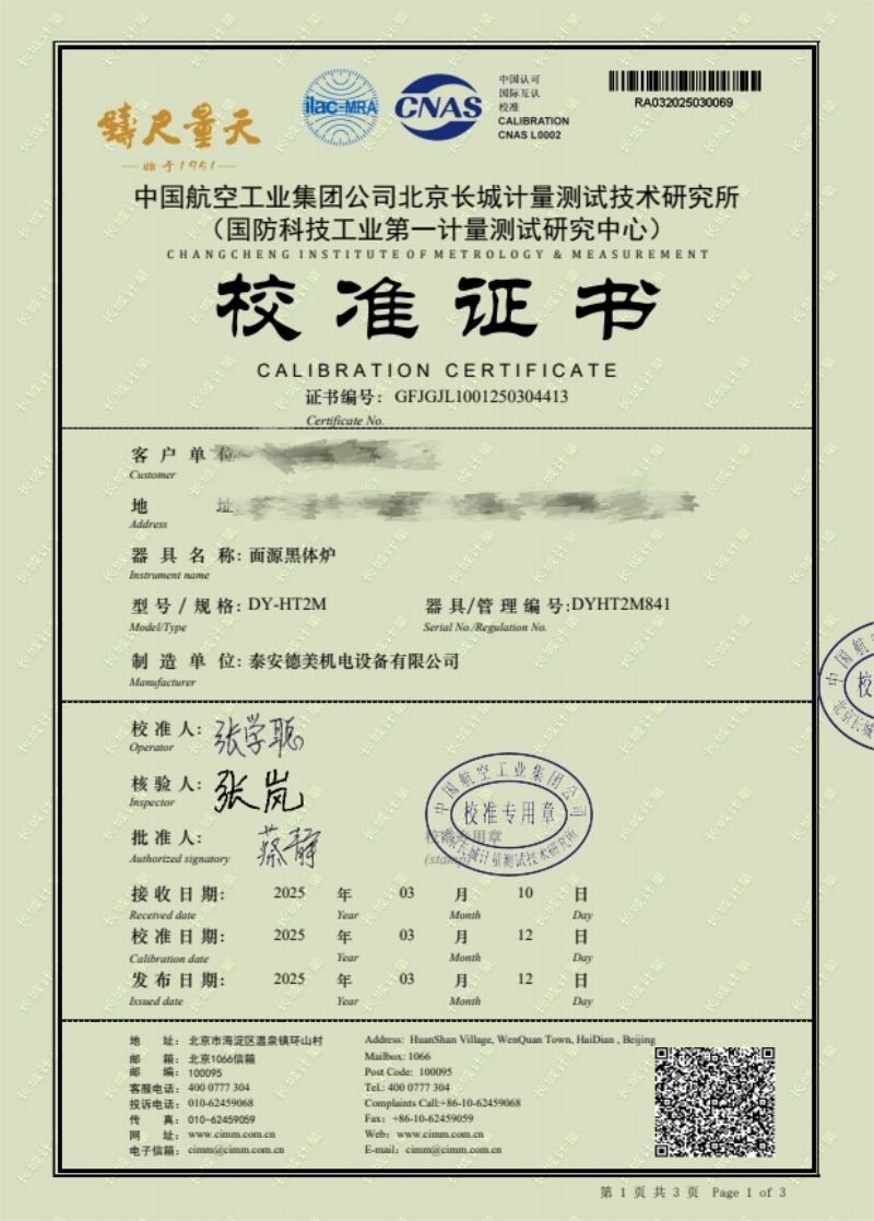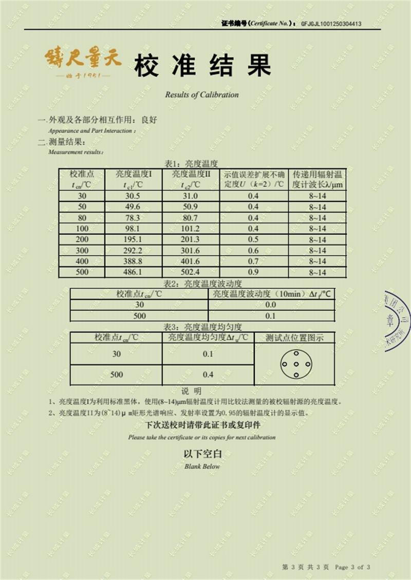 面源黑體爐(室溫+5-500℃)校準證書 2025-3-15 本文被閱讀 5598 次